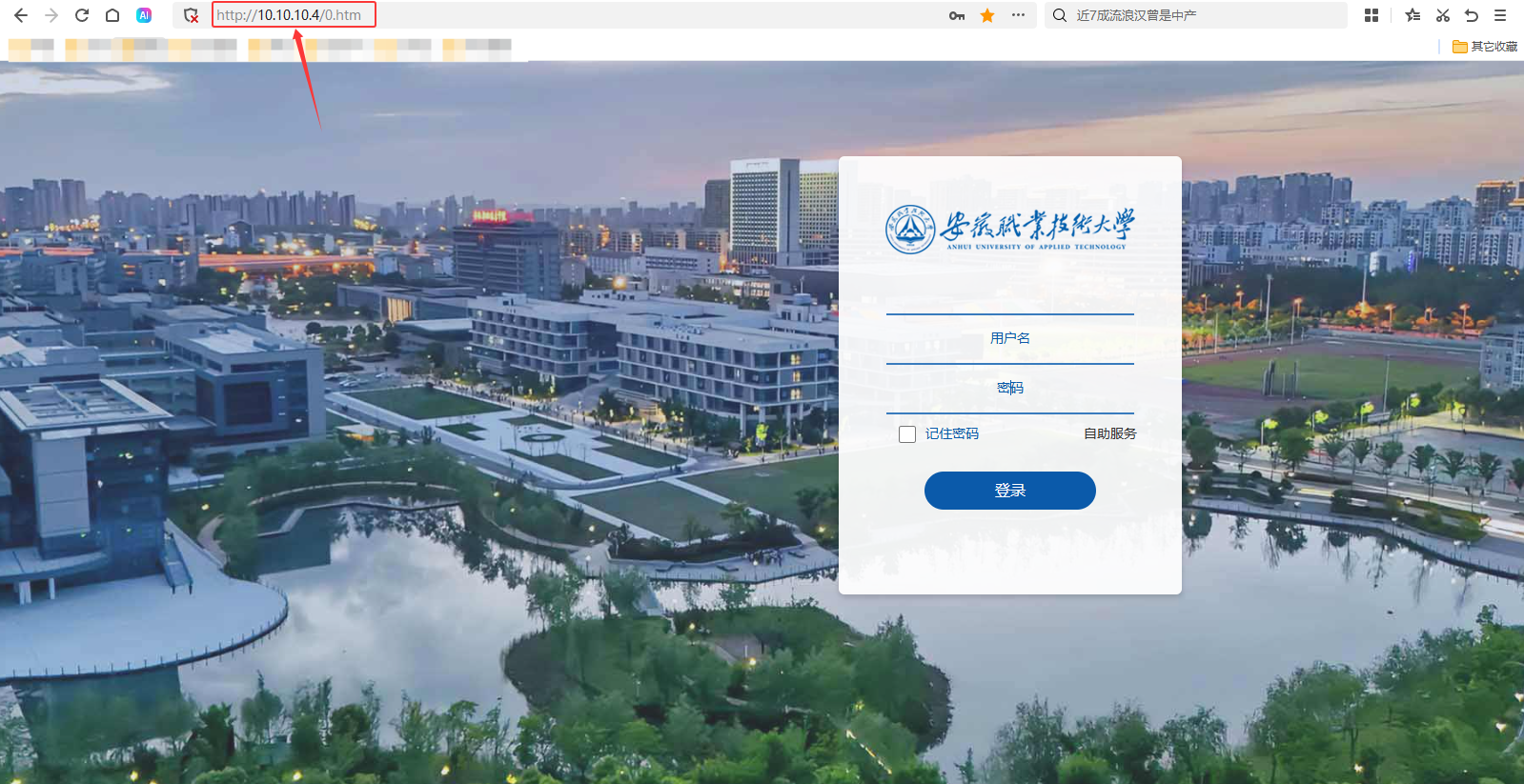 2)在地址栏中输入10.10.10.4访问上网认证页面;