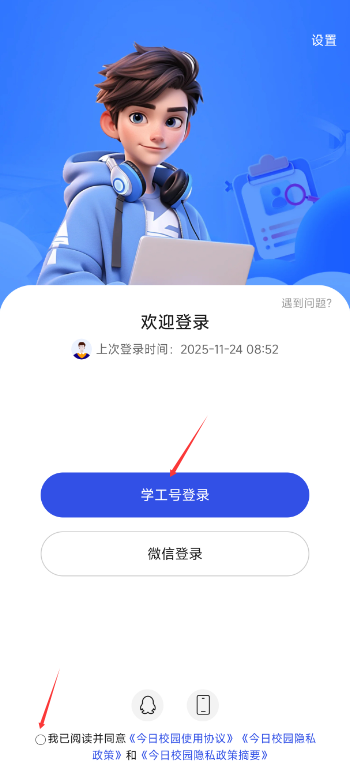 1)打开今日校园APP选择学工号