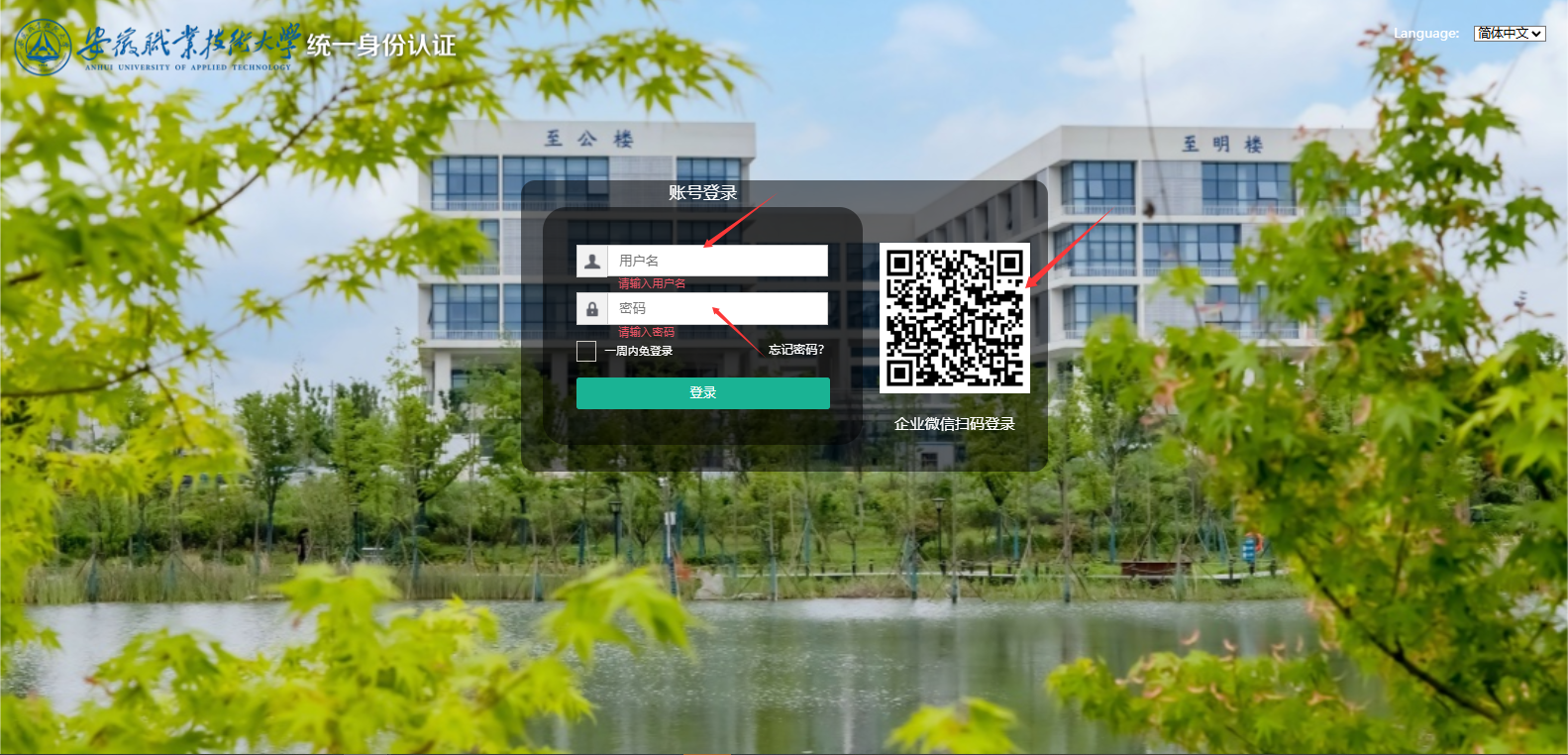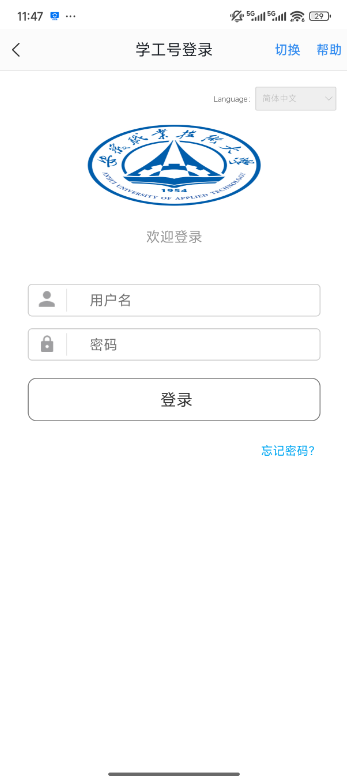 2)在登录页面输入学工号和密码进行登录