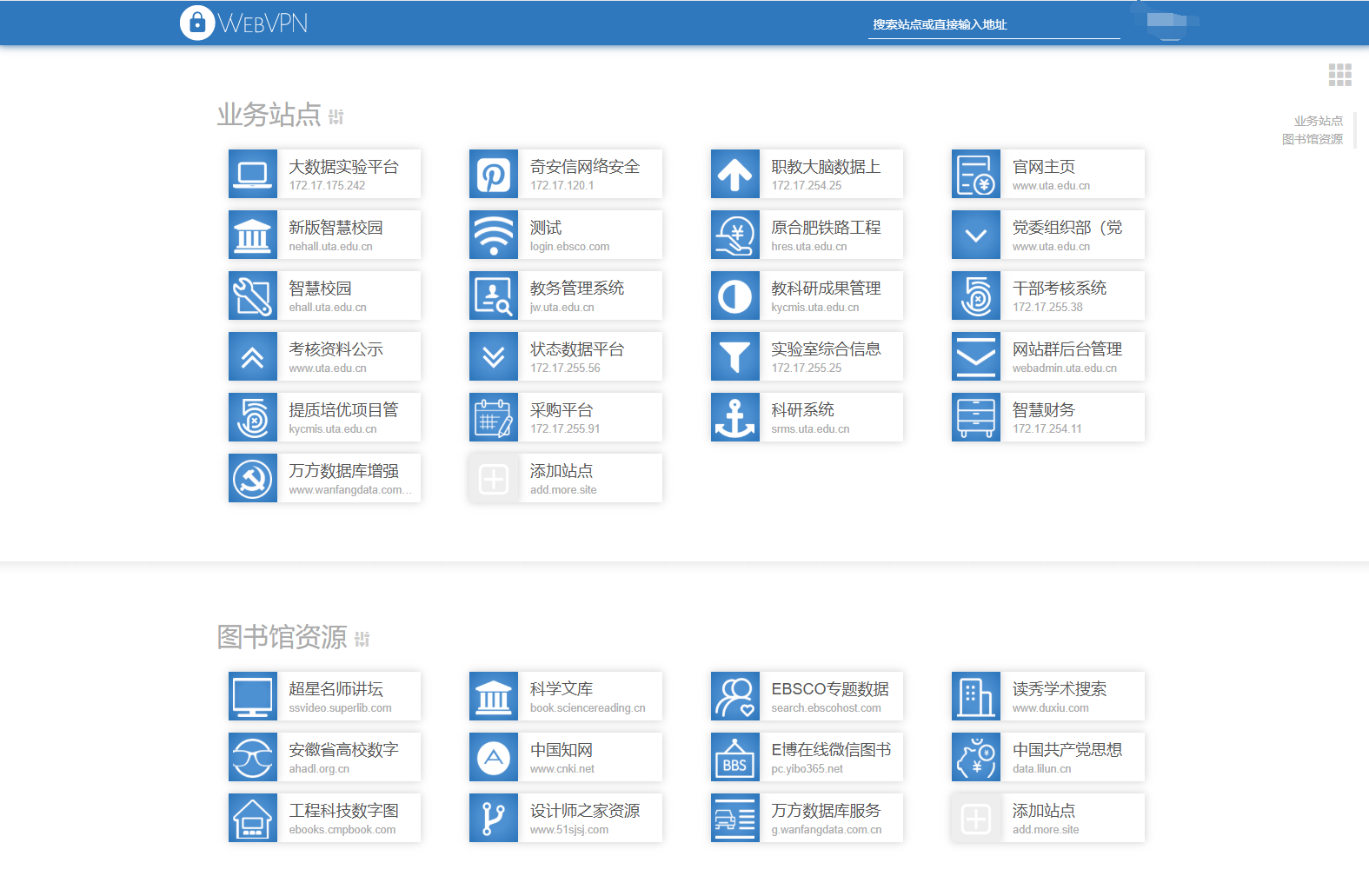 注:用户在校外使用校内资源时,需要通过WebVPN访问。