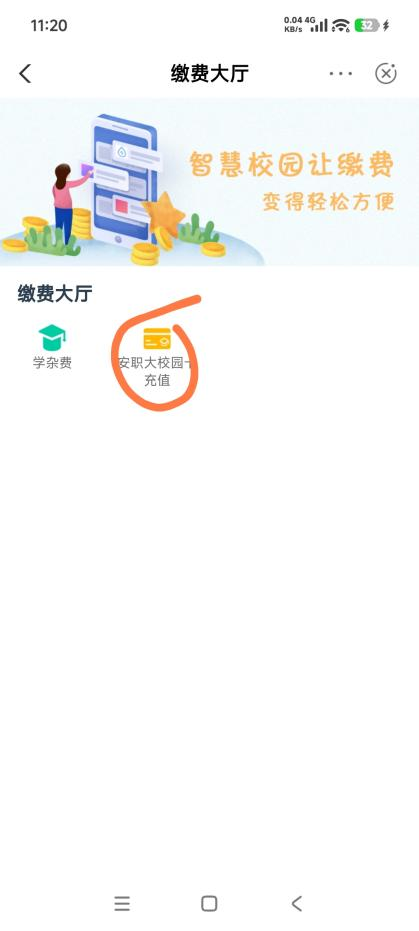 (3)绑定成功后,选择“缴费大厅”,再打开的页面点击“安职大校园卡充值”,根据提示步骤即可完成对绑定校园卡的充值。