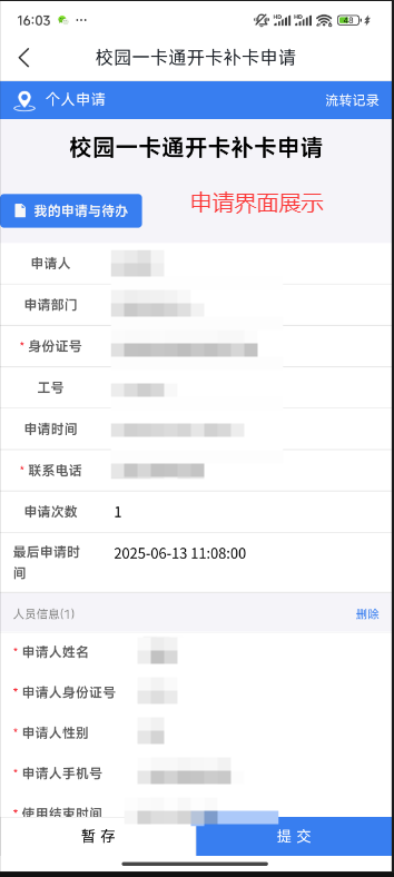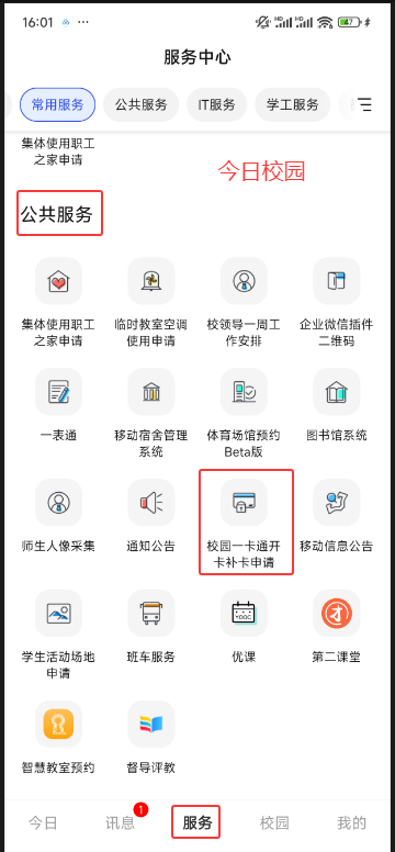 如需补办校园一卡通实体卡,可在“今日校园”上“校园一卡通开卡补卡申请”中发出申请。