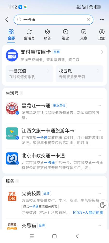 (1)在支付宝首页搜索栏输入搜索“一卡通”。