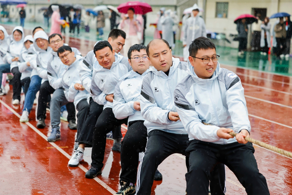 11月7日,比赛进入关键的半决赛与决赛。当日冷雨潇潇,气温骤降,场地湿滑,为比赛增添了巨大困难。在与实力强劲的机关1队的半决赛对决中,战况极为激烈。我院参赛选手数次因地面湿滑而失去重心摔倒,但无一人松手,无一刻放弃,他们一次次重新站起,一次次重新发力。这雨中坚持的身影,是意志对体能极限的超越,是个体对集体荣誉的绝对忠诚。最终,队伍凭借惊人的毅力与更为紧密的协作,战胜对手,闯入决赛。在冠军争夺战中,面对体能充沛的机关2队,全体队员虽已体力透支,却依旧斗志昂扬,全力以赴,坚持至最后一刻,最终惜败,获得亚军。