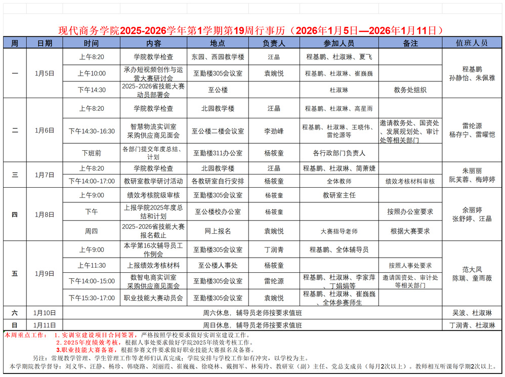 2025-2026学年第1学期第19周行事历