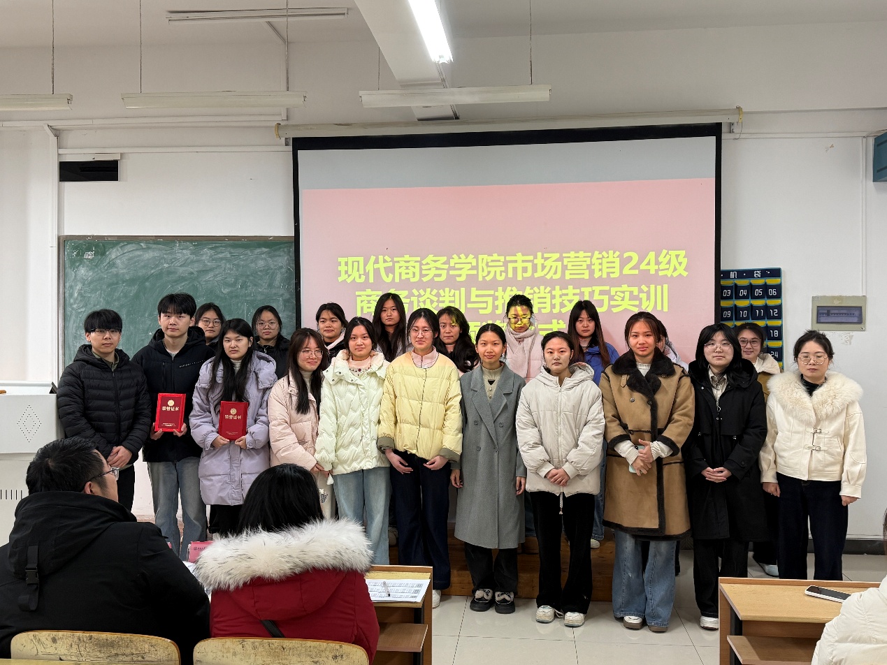 商务谈判与推销技巧作为市场营销专业的核心实践课程,此次实训以“真实场景模拟、实战能力锤炼”为导向,在为期两周的实训过程中,24级市场营销专业学子组建团队、分工协作,围绕产品调研、方案策划、谈判博弈、推销实战等核心环节开展系统训练。同学们深入钻研市场需求,精准定位目标客户,精心打磨谈判策略与推销话术,在模拟商业场景中反复演练、不断优化,充分将课堂所学的市场营销理论知识转化为解决实际问题的实践能力。
