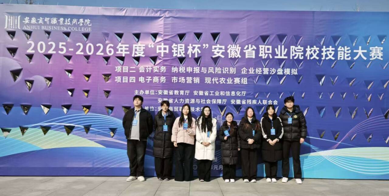 2026年1月19日至21日,学院纪静雅、王婷婷、雷曜恺、袁婉悦等四位老师组成的指导团队,带领学生一队刘妍语、武子妍、陆兆祥、韩凤麒和二队吴紫竹、王龙强、王思宇、赵文文,赴芜湖参加2025 年安徽省职业院校技能大赛(高职组)“电子商务”赛项,该赛项由安徽商贸职业技术学院承办。