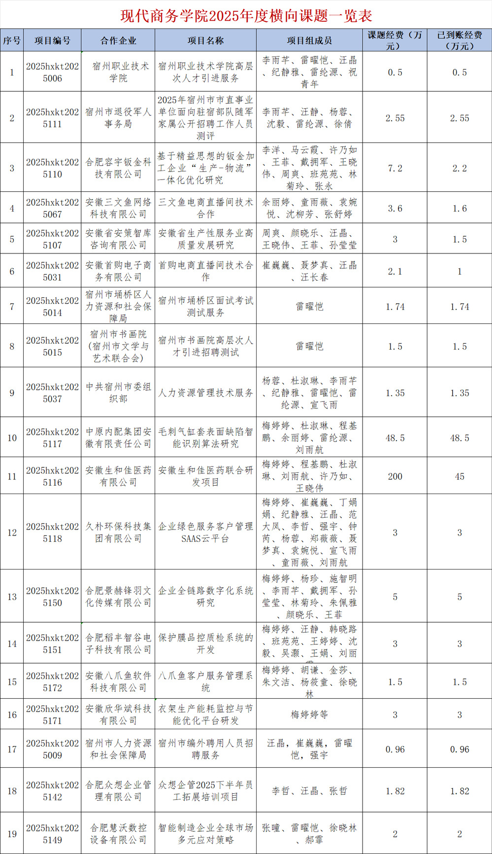 横向课题立项情况