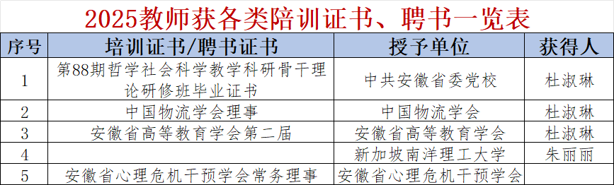 教师获各类陪训证书、聘书情况