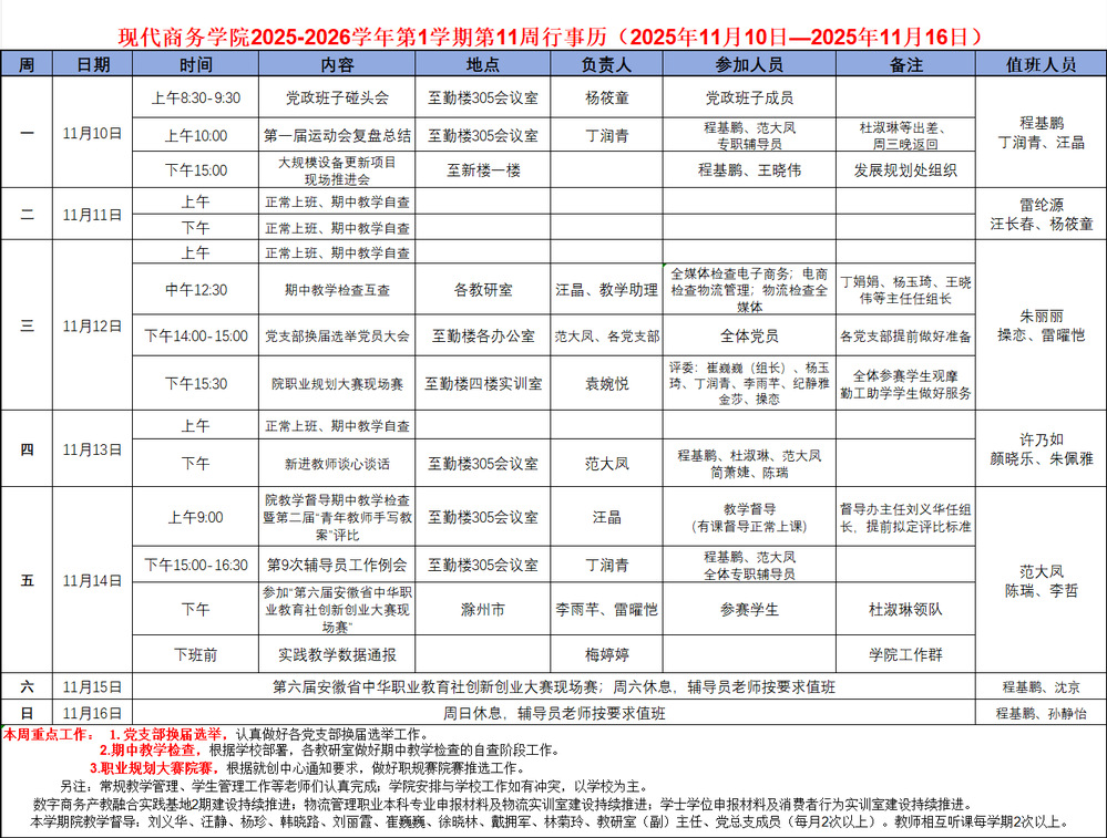 2025-2026学年第1学期第11周行事历