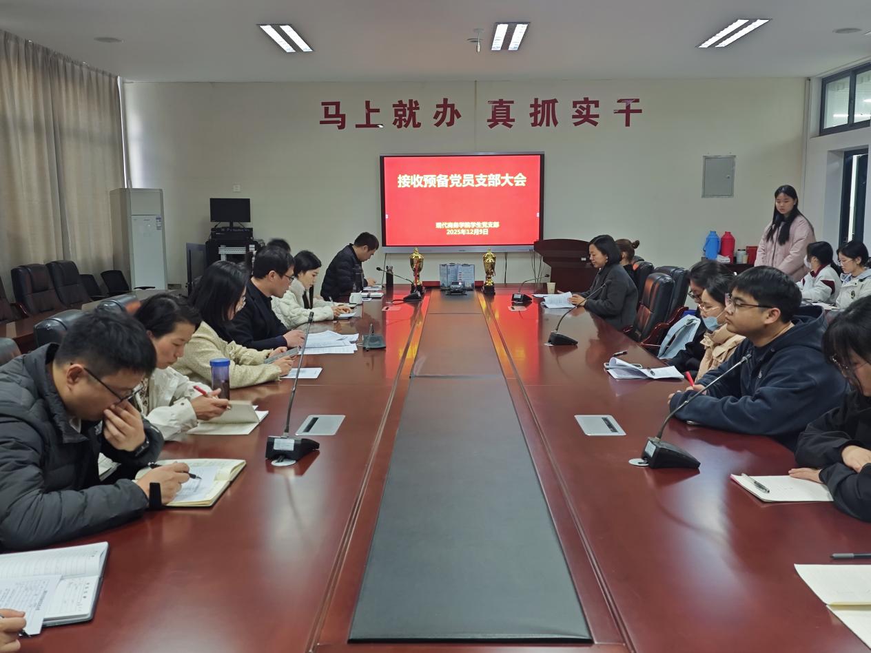 2025年12月9日,根据发展党员工作程序,现代商务学院学生党支部在至勤楼305会议室召开支部大会,依次讨论接收预备党员和预备党员转正事宜。大会由学生党支部书记范大凤主持,学生党支部全体党员参加会议。