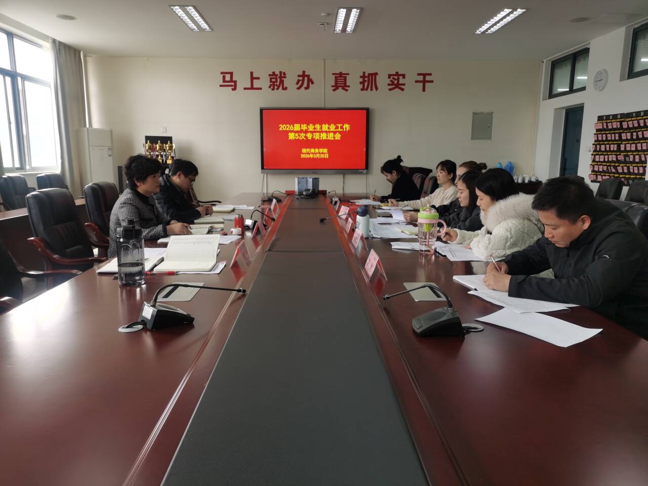 为全力推进毕业生就业工作,确保实现高质量充分就业目标,3月25日下午,现代商务学院在至勤楼三楼会议室召开2026届毕业生就业工作第五次专项推进会。学院院长杜淑琳主持会议,全体2026届毕业班辅导员参会。