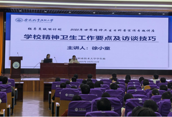 10月15日下午,合肥市第四人民医院(安徽省精神卫生中心)医生团队走进校园,合肥市精神卫生防治中心副主任兼合肥市第四人民医院防治科科长、安徽省精神卫生工作项目办执行主任徐小童为师生开展主题为“学校精神卫生工作要点及访谈技巧”的讲座,结合典型案例系统解析高校精神卫生工作要点及应对焦虑障碍、抑郁障碍、睡眠障碍的常用策略,促进辅导员与心理委员提升心理健康教育工作水平与职业能力,掌握有效沟通、科学评估与精准干预的方法。在“一站式”学生社区,精神科主任医师靳胜春、精神科副主任医师张丽、睡眠医学科副主任医师余家快为师生提供精神卫生与心理健康教育、情绪疏导与用药康复指导,让同学们在校园内即可享受到便捷、专业的医疗支持。