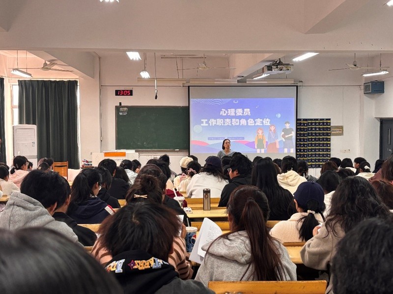 为健全我校“学校-院系-班级-宿舍/个人”四级心理健康教育工作体系,提升2025级新生班级心理委员的专业素养与履职能力, 11月14日下午,学生处大学生心理健康教育中心成功举办第一期新任心理委员业务培训。本次培训主题聚焦“心理委员角色认知及《班级心理委员工作手册》的使用”,由中心专职教师主讲,共130余名心理委员参加。