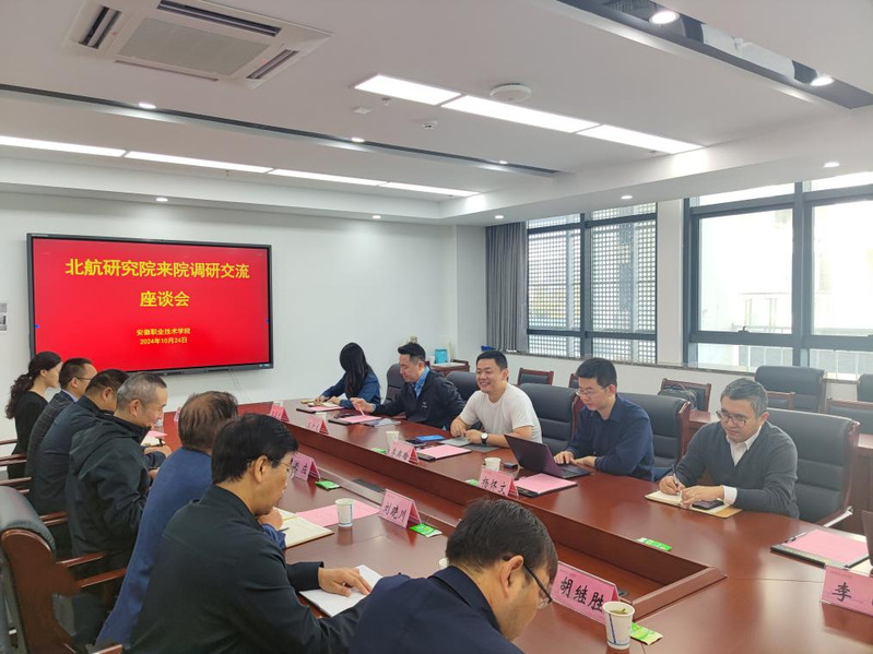 为加快构建职普融通、产教融合的职业教育体系,大力培养大国工匠、能工巧匠、高技能人才。10月24日,北航合肥创新研究院院长助理李奕晗一行来我院开展校企合作调研交流座谈会。学院发展规划处处长洪应、计算机与信息技术学院党总支书记周玉强、院长刘晓川、副院长李军、专业负责人及发展规划处有关人员参加会议。