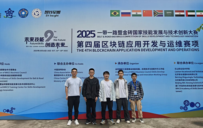 10月19日,2025年一带一路暨金砖国家技能发展与技术创新大赛之第四届区块链应用开发与运维赛项在乐山职业技术学院落幕。来自国内外的120余支队伍同台竞技,经过激烈角逐,我校派出的两支代表队分别获得二等奖、三等奖。