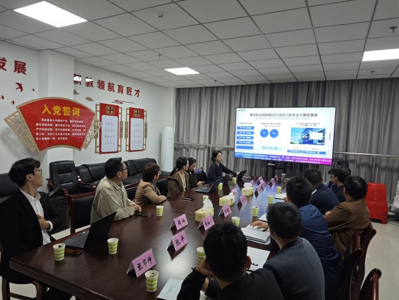 洽谈中,科大讯飞轩静静一行分享了他们在相关领域的经验和优势,介绍了科大讯飞在人工智能大模型、产教融合方面赋能职业院校高质量发展的成果与典型案例。期望通过深化产教融合,进一步强化学生实践与产业需求的对接,将校企携手合作,共同解决当下职教本科建设的相关问题,引入企业真实项目案例到教学中,为学院学生提供更多贴合实际产业需求的实践项目和实习机会,帮助学生更好地适应未来职场。
