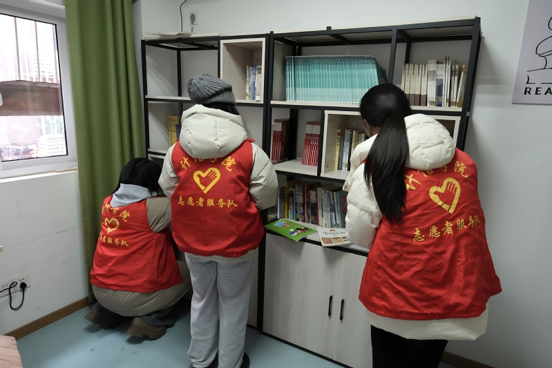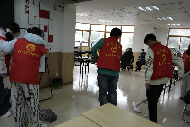 随后,志愿者兵分两路开展服务:一组用扫帚、拖把等工具,清扫服务站活动室、休息区,擦拭扶手、桌椅等高频接触部位,清理卫生死角;另一组整理图书角,将书籍按类别分拣上架,并把字体大、内容通俗的老年读物放在低层,方便老人取阅。