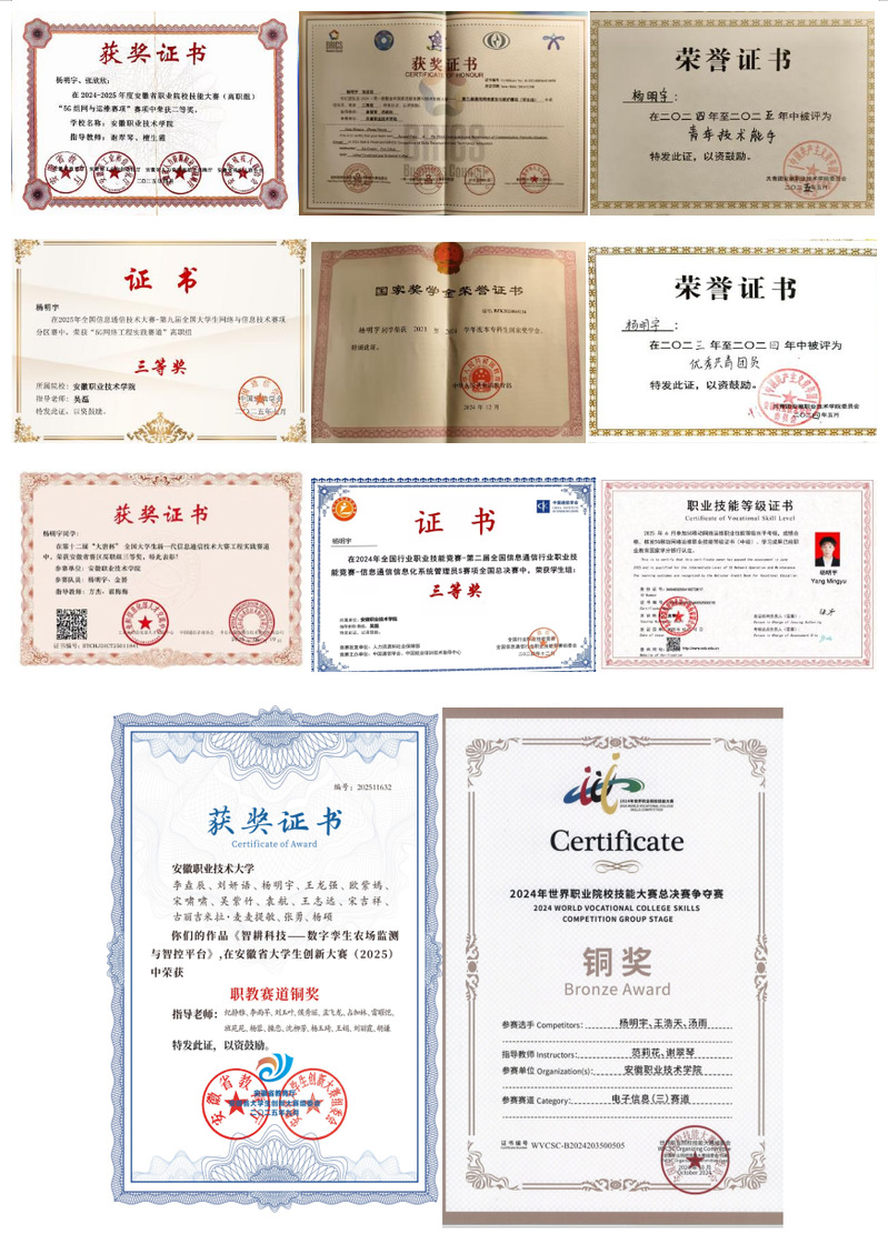 杨明宇,男,汉族,中共预备党员,5G移动网络运维中级师,计算机与信息技术学院通信2321班学生。担任班级团支部书记兼班长,曾担任学院学生会组织部干事、日新党建工作站副站长、日新志愿服务队队长、校数学建模协会团支书、学院班助负责人、通信实验室学生负责人。获得免试本科资格,将继续攻读本科专业学士学位。