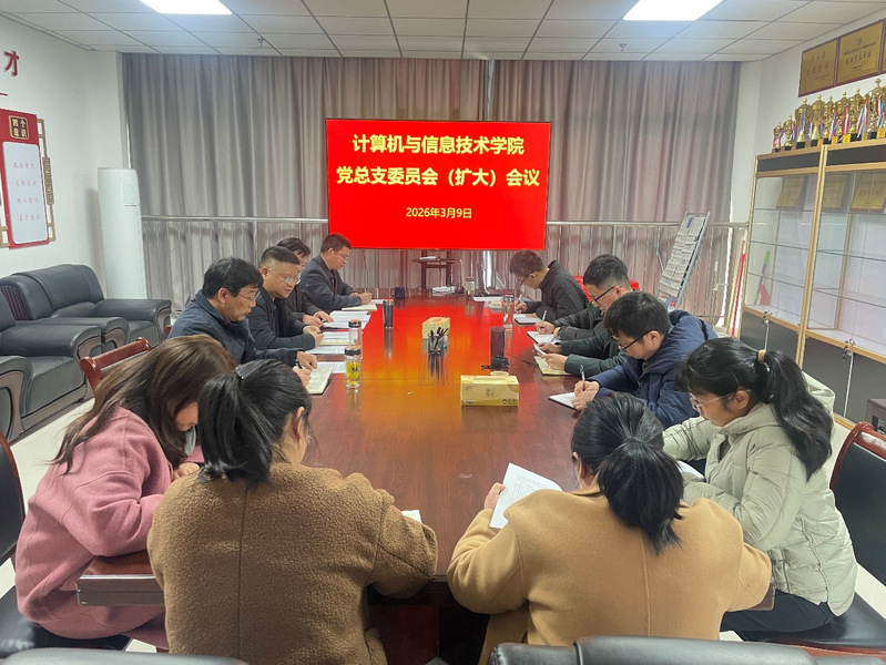 为深入贯彻落实党中央及学校党委关于树立和践行正确政绩观学习教育的部署要求,切实把思想和行动统一到教育强国建设和学院高质量发展实践中,3 月9日,计算机与信息技术学院党总支召开党总支委员会(扩大)会议,动员部署树立和践行正确政绩观学习教育。学院党政领导班子、组织员、党支部书记参加会议,会议由学院党总支书记周玉强主持。
