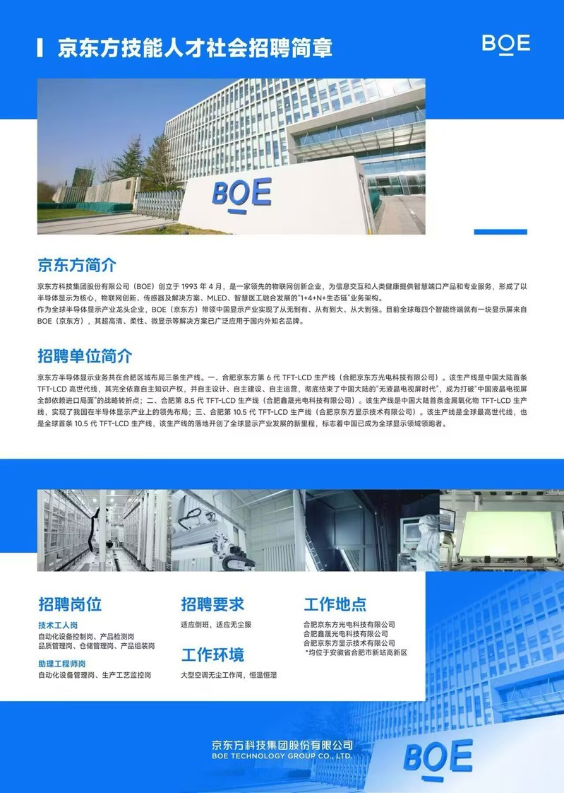 【周周有招聘】京东方技能人才招聘简章