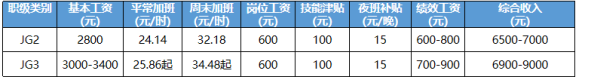 注:实习生入职即JG2,综合薪资6500-7000;实习期结束即JG3,综合薪资6900-9000,具体由个人加班情况和出勤情况决定。