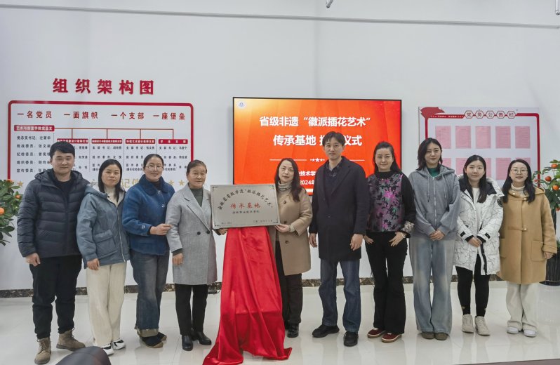 12 月4日,安徽省第六批非遗项目“徽派插花艺术”传承人付玉兰教授带领传承团队部分成员,在安徽职业技术学院艺术与创意学院举行传承基地授牌仪式。艺术与创意学院党总支书记左菁华、院长张文徽及人物形象专业全体教师参加此次活动。这也是徽派插花艺术在省内高职院校的第一个授牌基地。