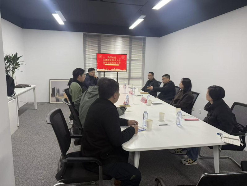 为精准拓展毕业生就业岗位,关切学生实习就业动态,12 月 19 日,安徽职业技术大学副校长胡辉平带队赴安徽米赛亚创意设计有限公司,开展访企拓岗专项活动,同时看望慰问在此实习就业的学生。学校督导组组长陈纲、教务处副处长胡继红,艺术与创意学院院长张文徽、副院长曾宪锋及专业骨干教师共7人参与。
