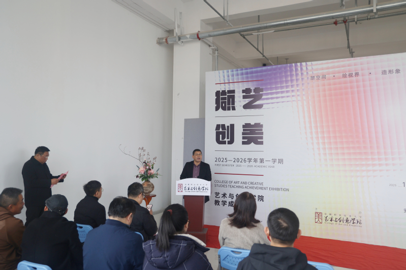 12月30日下午,艺术与创意学院“撷艺创美”教学成果汇展开幕式暨教学成果汇报会在至明楼一楼展厅举行。校领导盛鹏、张智清、胡辉平,部分部门、二级学院主要负责人及艺术与创意学院师生齐聚一堂,共同见证教学成果汇展开幕。开幕式由艺术与创意学院党总支书记李仿民主持。