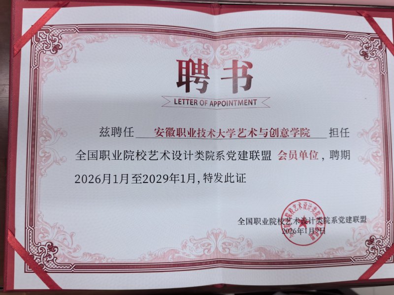 会上,我校艺术与创意学院被正式聘任为联盟会员单位,这标志着学院党建工作与专业发展步入协同联动、共建共享的新阶段。此次获聘为联盟会员单位,既是对学院党建与专业建设成果的肯定,也为学院进一步拓展合作平台、深化育人改革提供了重要契机。学院将积极履行会员单位职责,充分发挥自身在艺术设计教育与创意人才培养方面的特色优势,与全国兄弟院校及行业企业深化协作,共同探索党建引领下专业建设、课程改革、社会服务的新模式、新路径。