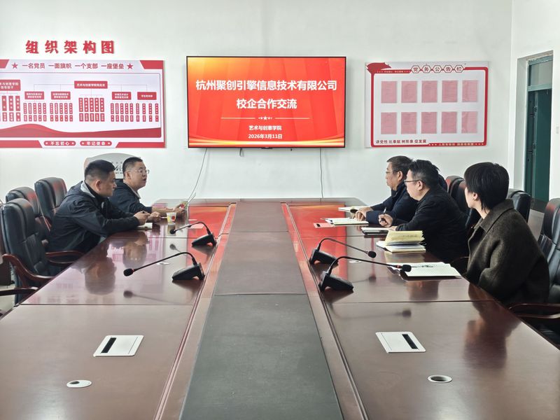 为深入贯彻国家产教融合、校企协同育人政策,落实访企拓岗促就业专项工作要求,推动专业与行业发展精准对接,3月11日,杭州聚创引擎信息技术有限公司副总裁田骥、市场部总监江江一行到访艺术与创意学院,就深化校企合作、共建育人平台等事宜开展专项交流洽谈。艺术与创意学院党总支书记李仿民,副院长曾宪锋及部分骨干教师参加了座谈会。