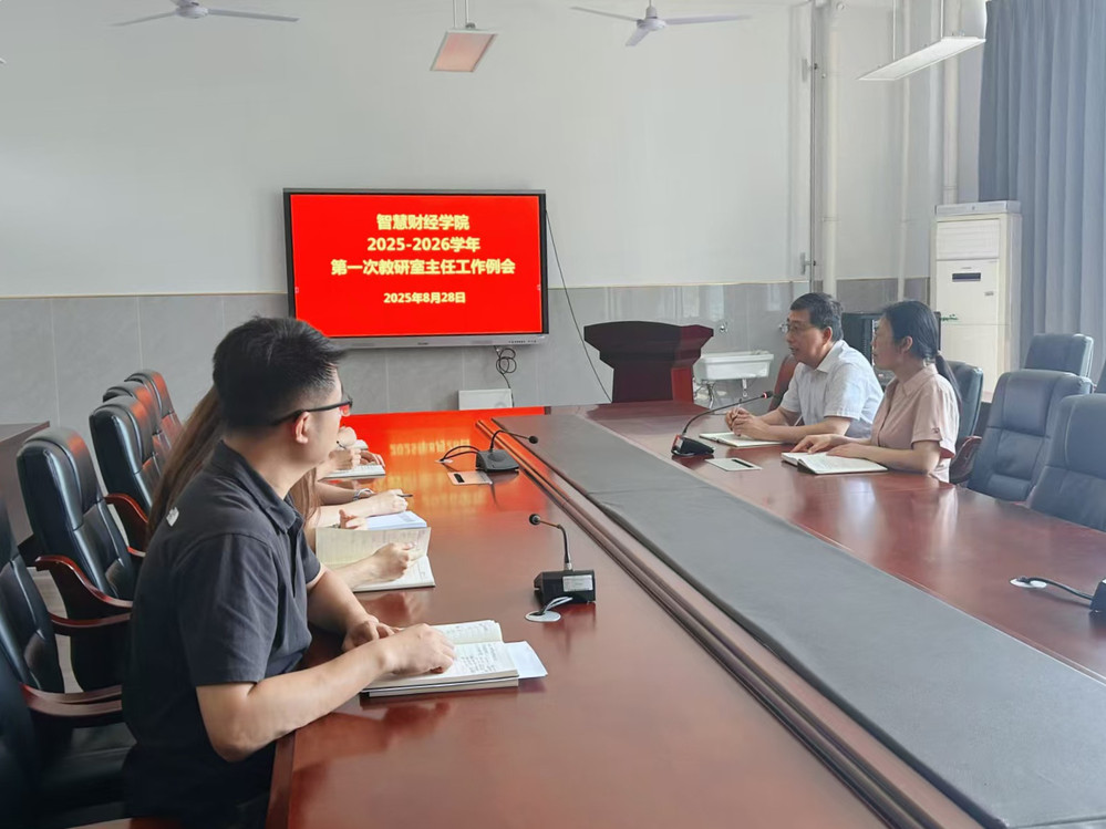 8月28日下午,智慧财经学院在至善楼315会议室召开2025-2026学年第1次教研室主任和专业负责人工作会议,学院党总支副书记周宁、副院长汪洪斌、各专业负责人和相关工作人员参加了会议,会议由汪洪斌主持。