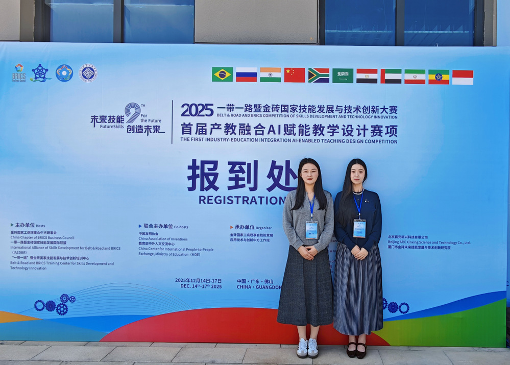 12月14日至17日,2025“一带一路”暨金砖国家技能发展与技术创新大赛首届产教融合AI赋能教学设计赛项全国总决赛在广东职业技术学院圆满落幕。我院两支教师代表队进入决赛,经过激烈角逐,智慧财经学院教师李莹莹、梁天悦队伍获全国二等奖,孙晨晨、毛惟婧队伍获优胜奖,安徽职业技术大学获优秀组织奖。