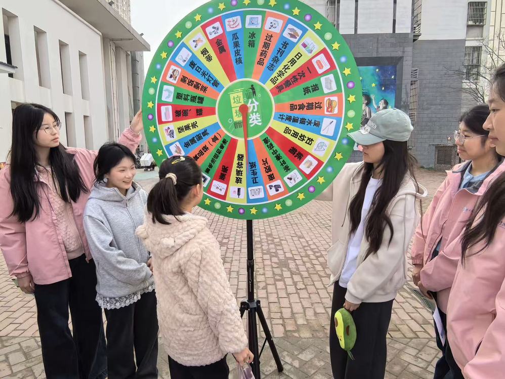 趣味互动寓教于乐。设置垃圾分类大转盘游戏,居民转动转盘后,志愿者们逐一讲解对应垃圾的分类标准与投放要求,在轻松活泼的氛围中传递环保知识,吸引了众多居民与小朋友踊跃参与;实物教学精准科普。利用分类实物模型,手把手指导居民辨别可回收物、有害垃圾、厨余垃圾和其他垃圾,针对日常分类中的易错点进行重点讲解,切实解决居民生活中的分类难题;入户宣讲传递温暖。志愿者们走进社区街巷,向老年群体、青少年等不同人群发放垃圾分类宣传手册,用通俗易懂的语言耐心讲解垃圾分类的重要意义与操作方法,确保环保理念传递到每一位居民心中。