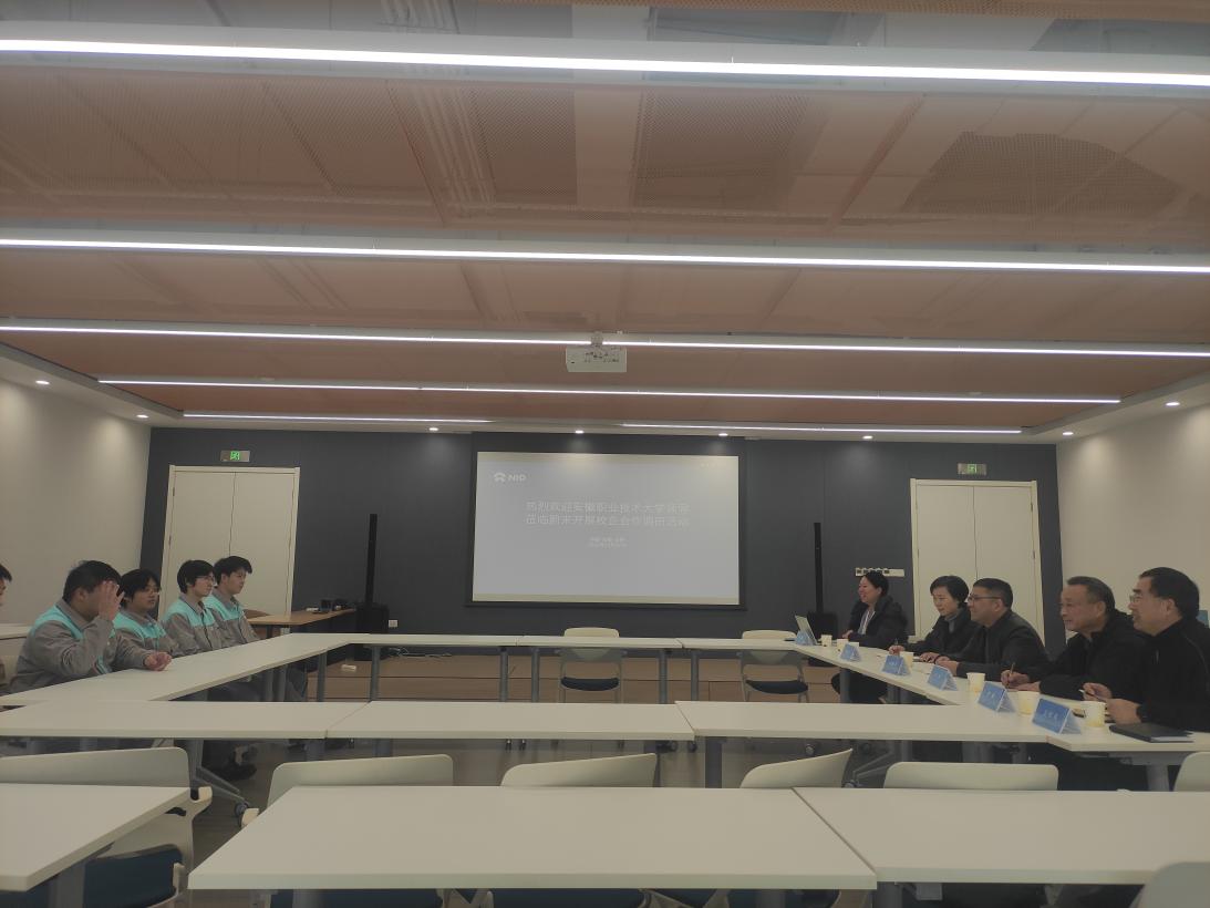 蔚来汽车科技(安徽)有限公司招聘经理齐晶晶情接待了学校一行,并详细介绍了公司发展历程、最新生产经营状况及人才发展路径。胡辉平向企业方介绍了学校升本以来在专业建设、招生就业方面取得的最新进展。随后,调研团与我校正在参加实践教学的学生代表进行了座谈。