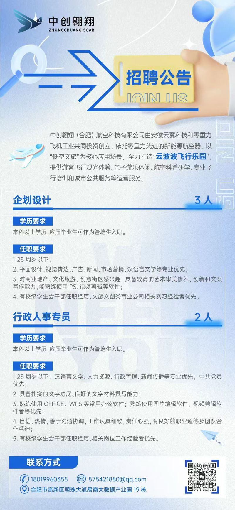 【招聘公告】中创翱翔(合肥)航空科技有限公司 招聘简章