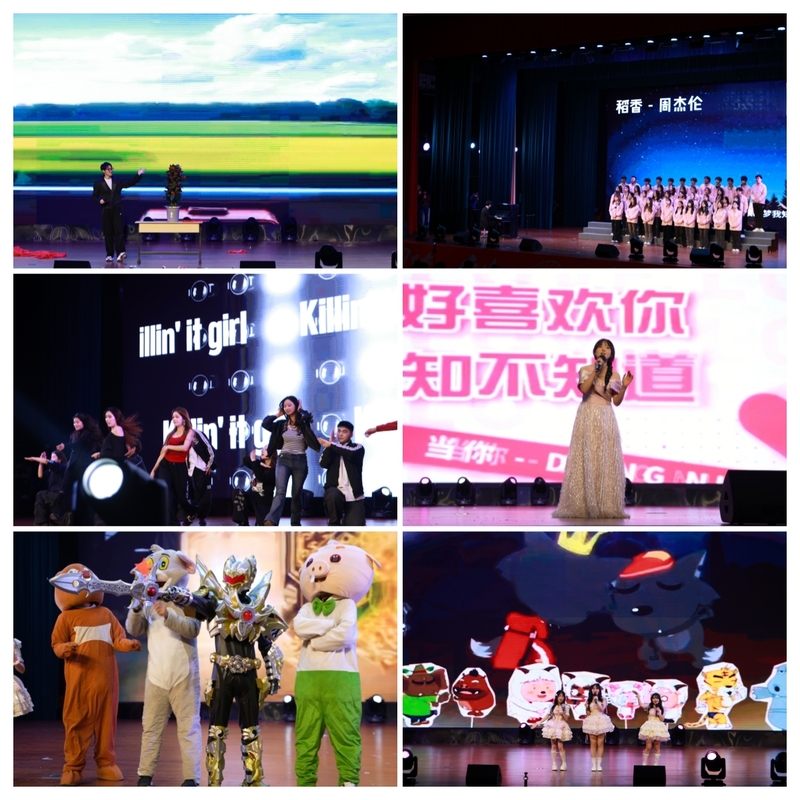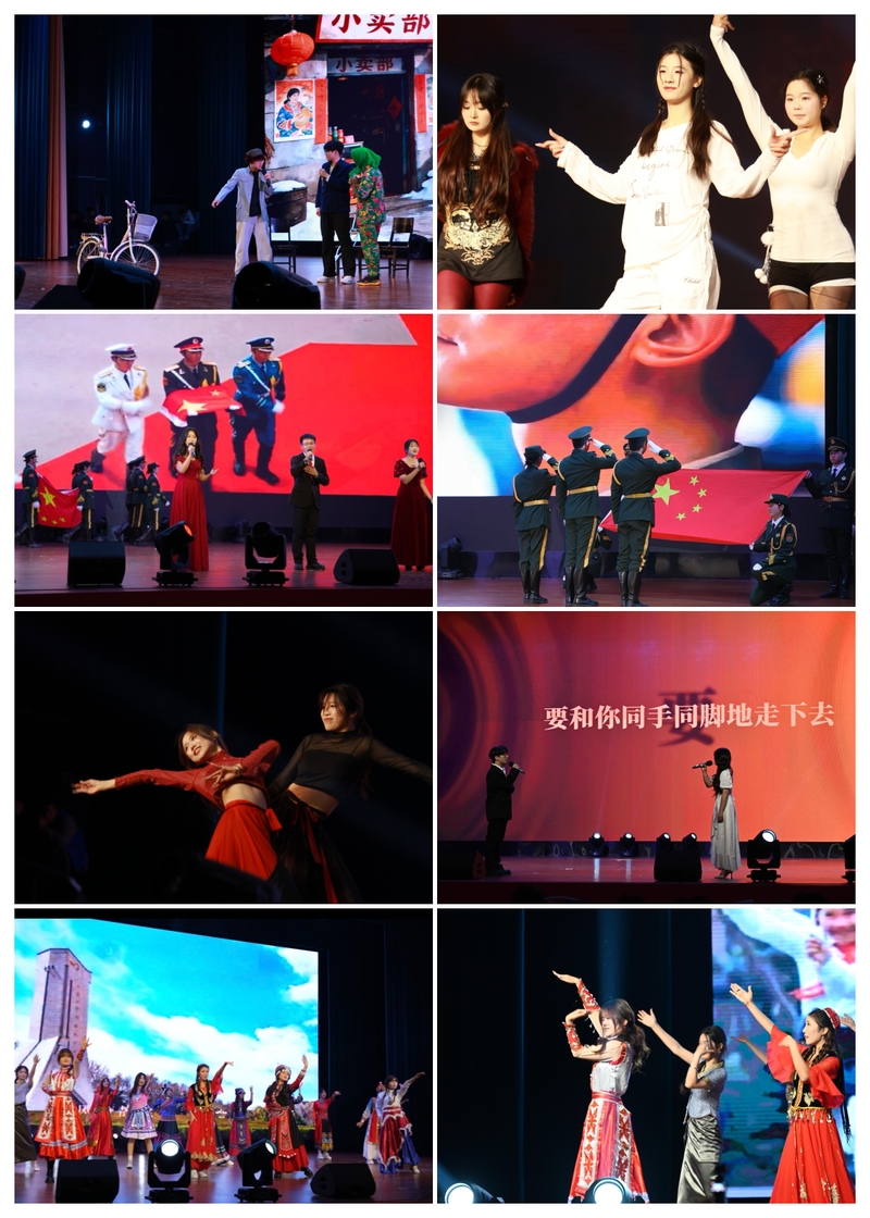 收官篇章“同行・共耀华章”将晚会氛围推向顶点。小品《卖拐》以爆笑对决传递理智思辨之道,警示学子逐梦路上保持清醒;舞蹈《Jump》用默契舞姿诠释团结力量,彰显跨院协作风采;《紫荆花盛开》以深情歌声抒发家国情怀,联结个人梦想与时代担当,格局尽显;《时候》《同手同脚》演绎成长蜕变与同行温暖。最终,歌舞《相亲相爱一家人》温情落幕,两院学子携手登台,用歌声与舞姿诠释“心手相牵、同心相依”的深厚情谊,让跨院一家亲的温暖扎根人心。
