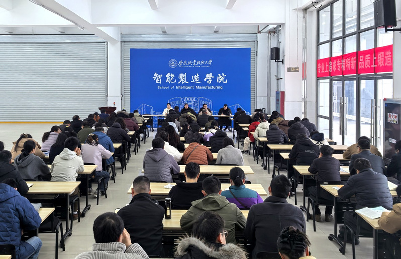 3月4日,智能制造学院在学院至成楼1楼大厅召开2026年春季新学期教职工大会暨3月政治理论学习会。学院领导班子成员及全体教职工参会,会议由学院党总支负责人常辉主持。