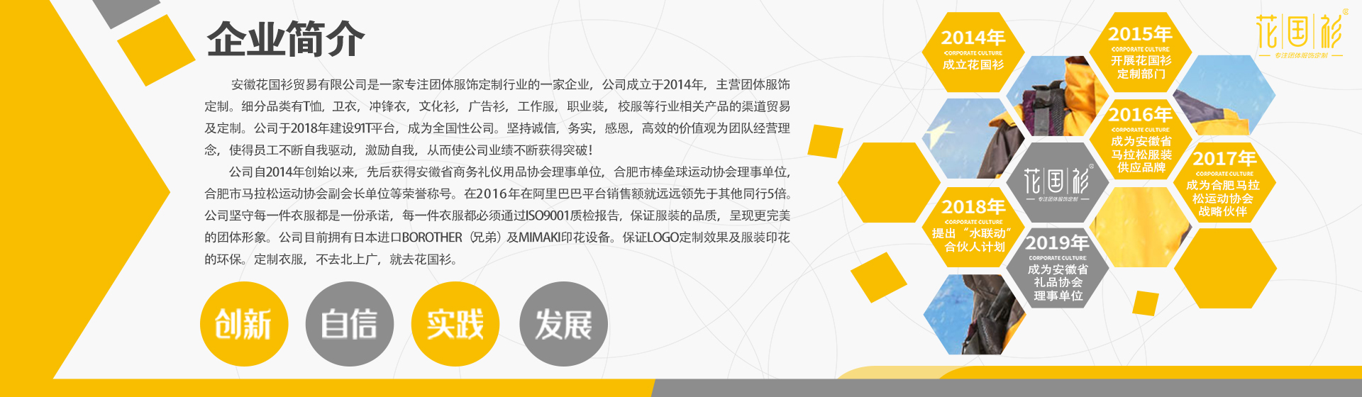 2014年朱东伟和杜亚娟一起创办了一家团体服饰一站式定制公司-安徽花国衫贸易有限公司,创办这家公司的初衷是为了柔性团体定制的需求。团体服饰定制需求量在中国日益递增,随着人民生活水平提高,大家都很在意团体和企业形象的宣传打造。公司在2016年提出团体服饰C2M一站式定制理念,将团体服饰定制进行多元化,标签化的方式进行事业部化的操作,为各种人群提供专业的形象打造。并在2016年完成1000万的销售额目标。2017年,公司实施团体服饰与SAAS系统部署化操作,让传统的服装定制与互联网化运营,提升客户体验,PC端与移动端在线定制需求,实时跟踪处理订单状况,保证订单正常进行,扩大生产面积,后整、配套一体化操作。公司拥有自己的裁减,缝制,印花,绣花车间1000平方。2017年与万达、万科、合肥市马拉松运动协会、中国电信、中国移动达成战略合作伙伴,突破2000万的销售额。