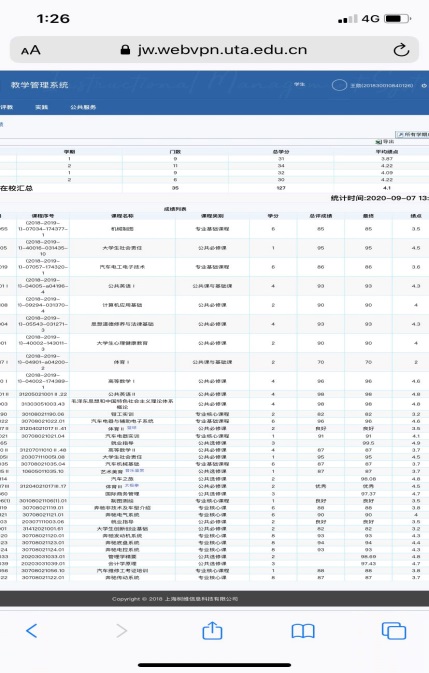 2018-2019学年期末各科平均绩点4.04,专业排名第一;2019-2020学年,期末各科平均绩点4.15,专业排名第一。两学年在校汇总,平均绩点4.1。