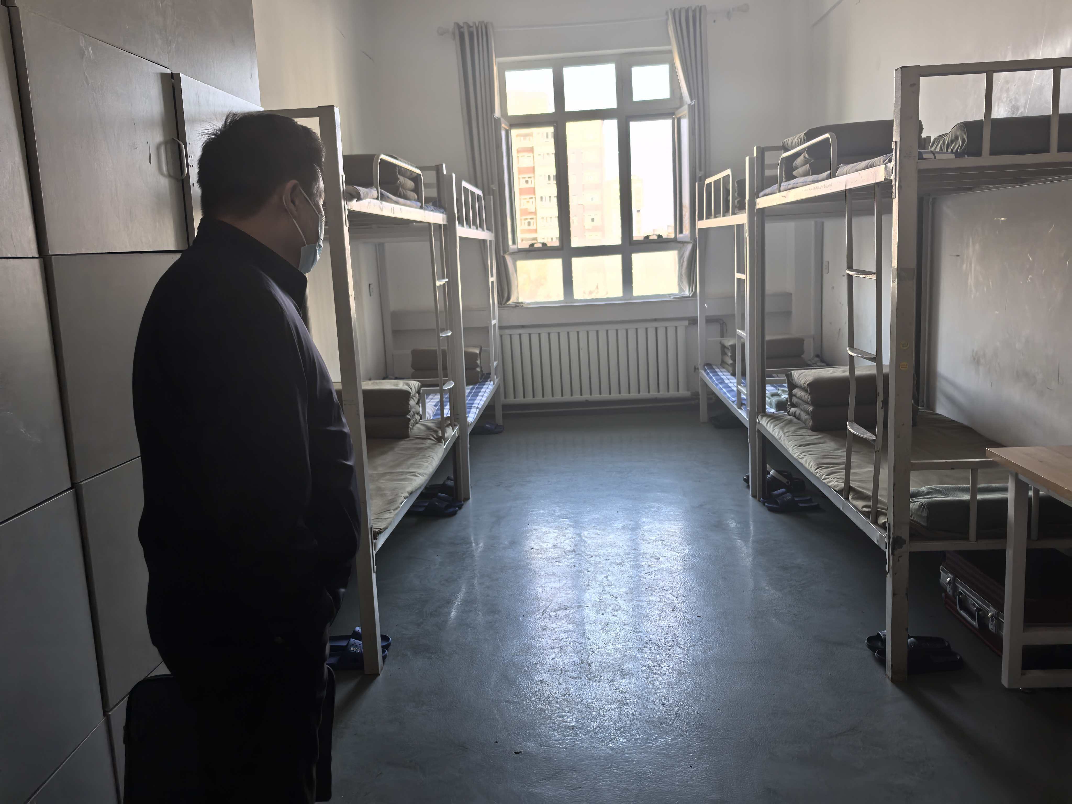 陈主任走进学生宿舍,查看住宿环境、设施配备及卫生状况,关切了解学生居住舒适度。