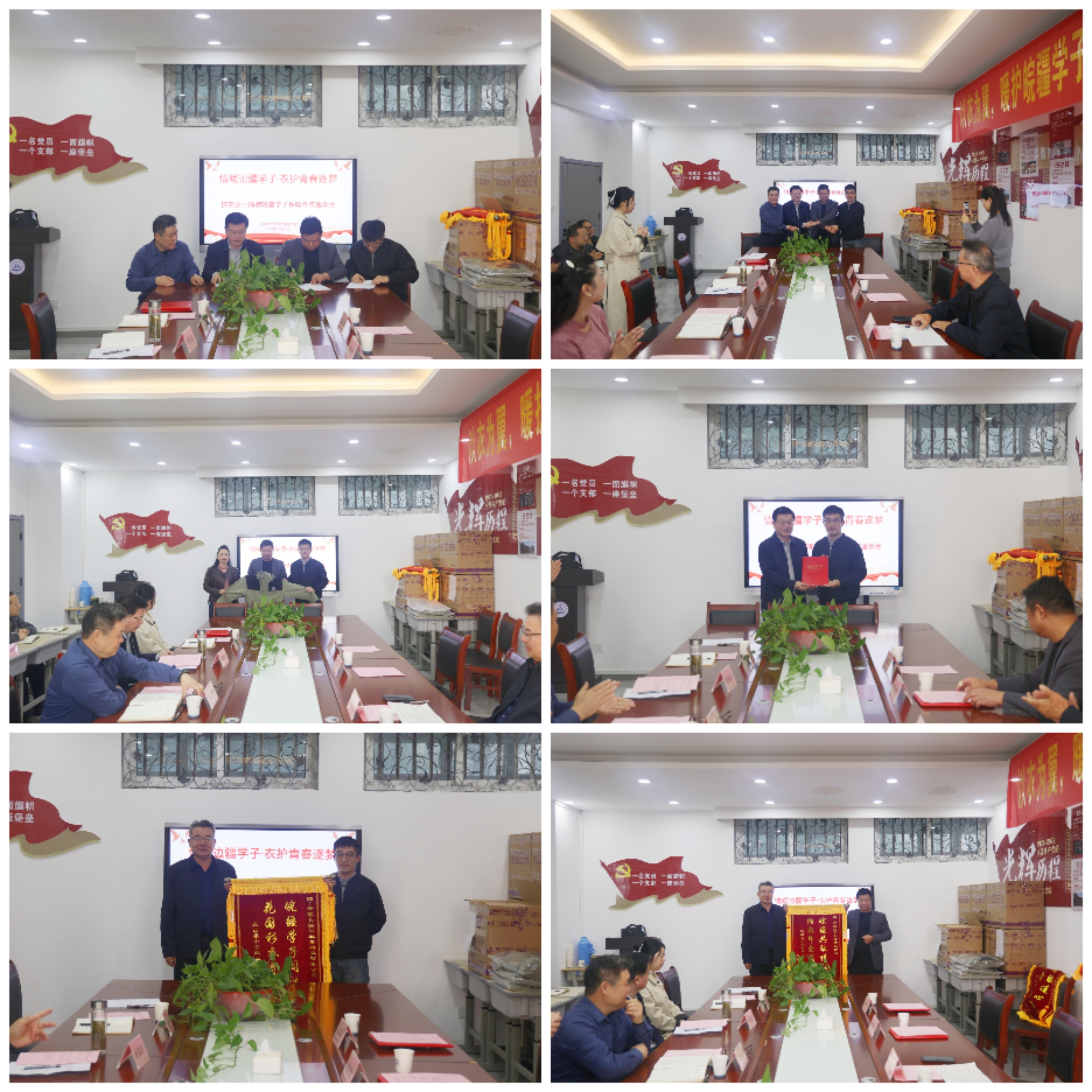 捐赠仪式在中专部会议室举行,新疆教育厅驻皖工作组组长方红军,捐赠校友高念龙、朱东伟,校党委委员、中专部主任陈晓春,校教育发展基金会秘书长林葆春,以及辅导员代表、学生代表共同见证了这一温馨时刻。仪式上,陈晓春主任首先介绍了安徽职业技术大学的发展历程与办学概况,对两位校友的慷慨善举表示衷心感谢与高度肯定。随后,双方签署捐赠协议,中专部副主任王丹代表中专部接受捐赠,并向两位校友赠送锦旗,全体人员合影留念,定格这份跨越山海的爱心。