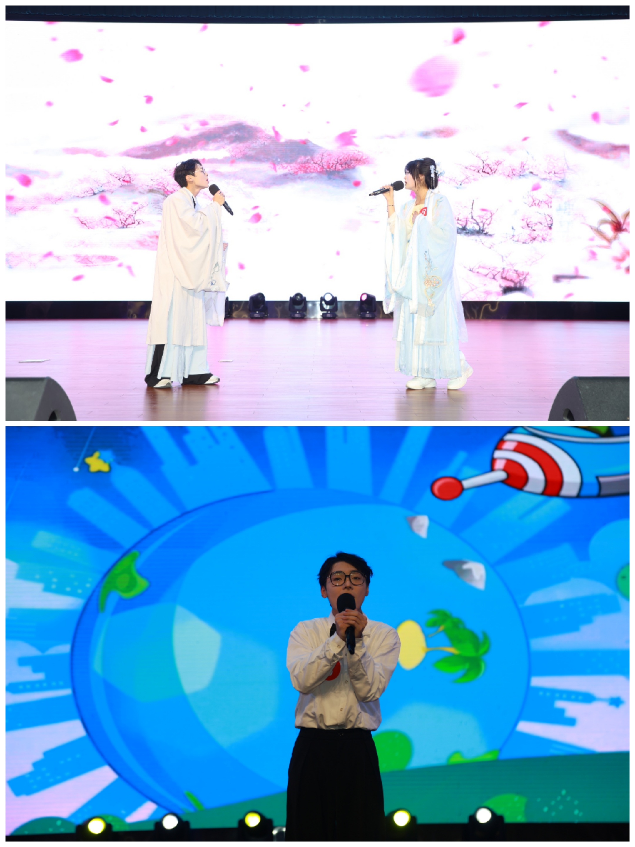 本次决赛设置“组队展示·二重唱”与“个人展示·独唱”两大环节,从音乐素养、协作能力、舞台表现力等多维度综合考察选手实力。二重唱环节中,靳家旺与队友默契配合、声部交融,以一曲《神话》演绎经典旋律,传递深情意蕴;独唱环节里,他以《大梦想家》唱响青春宣言,用饱满真挚的情感、娴熟流畅的演唱技巧展现青年学子的蓬勃朝气与追梦热忱,赢得评委与现场观众的阵阵掌声。