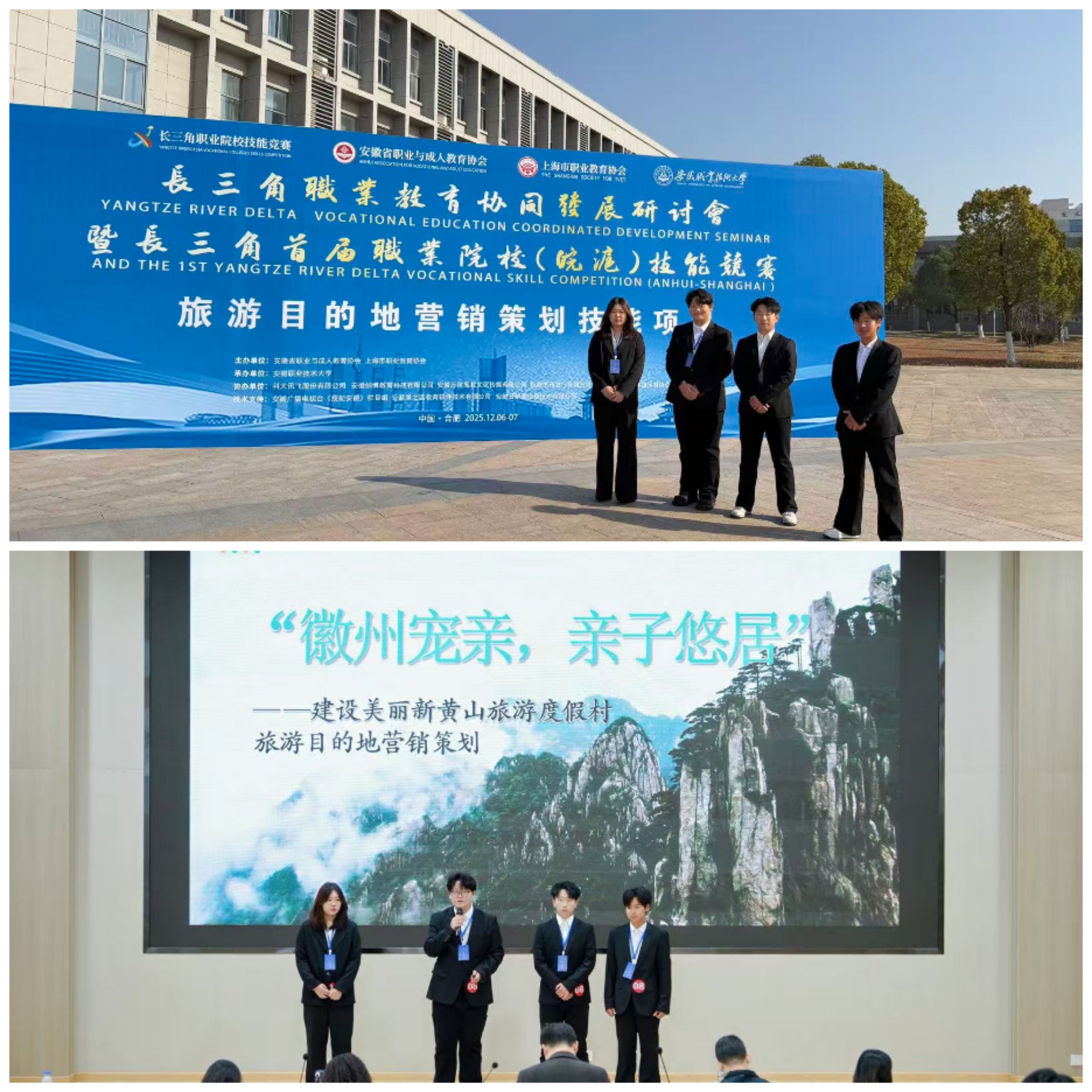 近日,长三角首届职业院校(皖沪)技能竞赛(中职组)“旅游目的地营销策划技能”项目圆满落幕。我校中专部凌嘉悦、荆晓飞、孙慧俊、程鑫磊四位同学组成的参赛团队,凭借扎实的专业基础与默契的团队协作,在众多强手中脱颖而出,斩获三等奖。